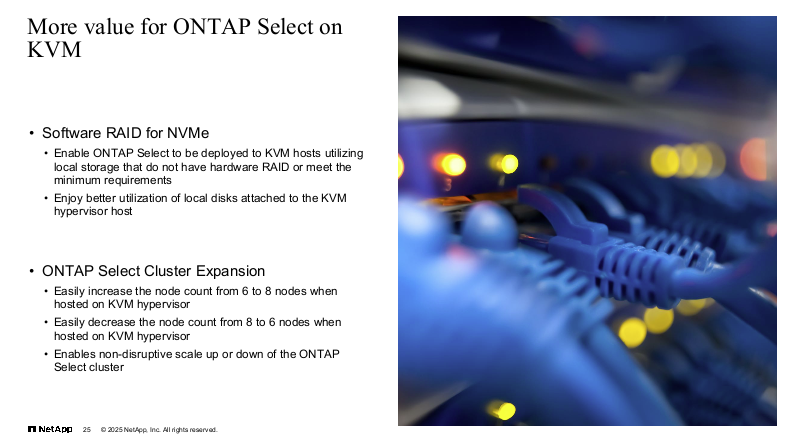 ONTAP Select umożliwia uruchomienie ONTAP na własnym sprzęcie lub hypervisorze. W wersji 9.17 wprowadzono kluczowe ulepszenia: